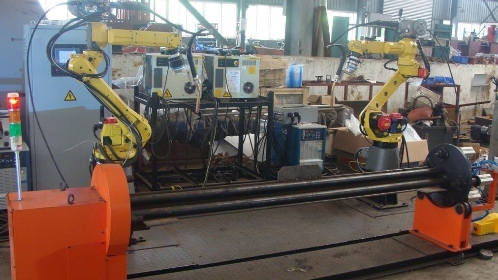 塔式起重機自動化焊接工作站,根據所焊接塔機工件的不同,可細分為標準節焊接機器人工作站、連接套焊接機器人工作站與轉臺焊接機器人工作站。分別采用單機單工位、雙機單工位、機器人行走加兩軸變位機的形式,配備焊縫尋位軟件、點焊跟蹤軟件,通過合理的配置操作人員,設備滿足24小時三班連續作業工作能力,可實現該系統的效率最大化。產品參數: