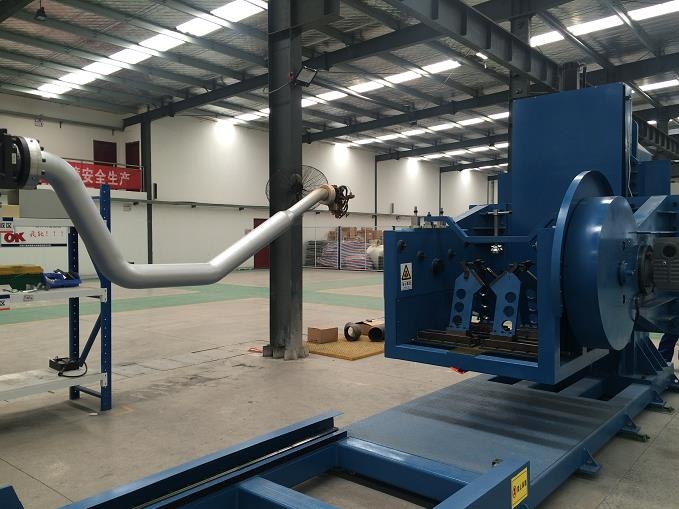彎頭自動化堆焊工作站由回轉變位機、工件升降、翻轉調整機構、單鎢極焊槍、雙鎢極焊槍、定制工裝夾具、三坐標、溫控系統、AVC跟蹤系統、熱絲電源、送絲機、冷卻系統、控制系統等部分構成。