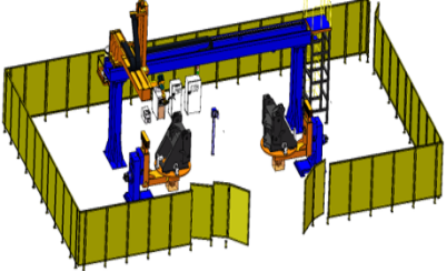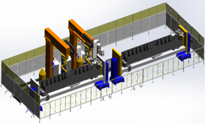 該項目為推土機橫梁及翻斗自動化焊接工作站,整站采用倒掛式機器人兩臺,配合兩套工裝夾具及外部行走軸,根據(jù)現(xiàn)場環(huán)境采用雙機雙工位作業(yè),充分保證節(jié)拍及焊接品質,實現(xiàn)了農業(yè)機械的自動化焊接。