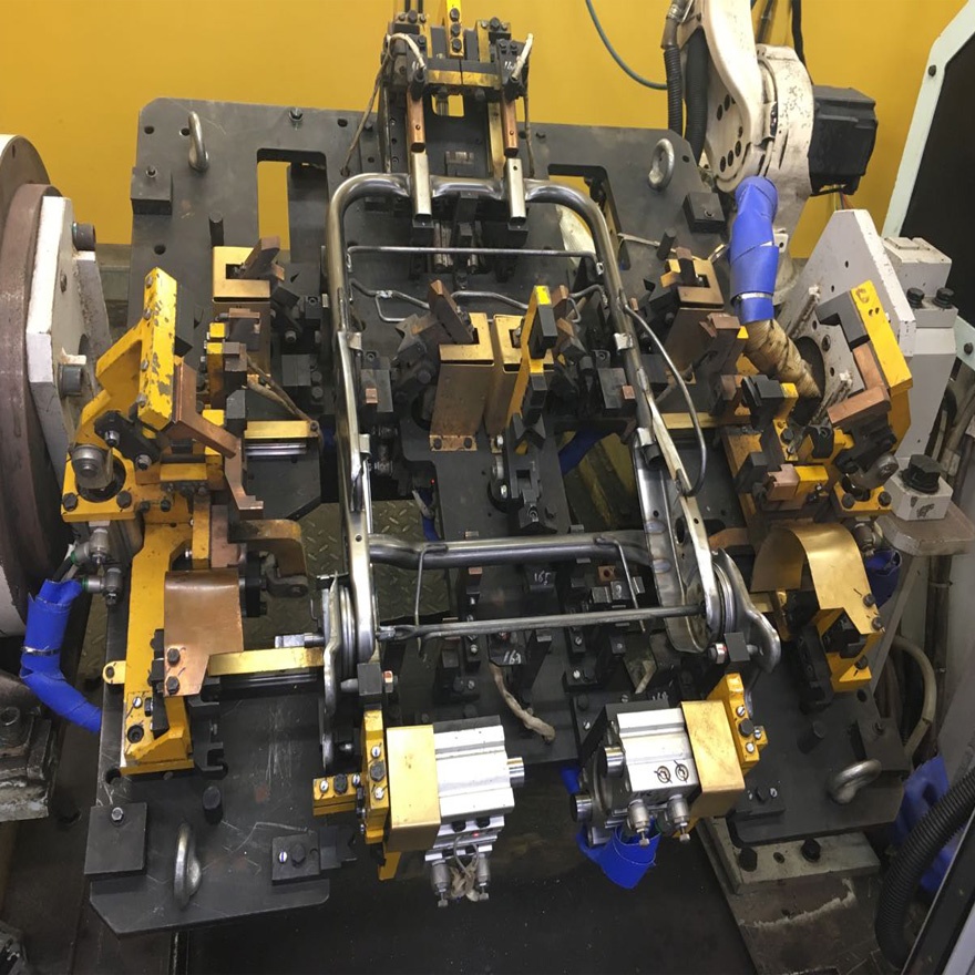 將工件裝夾在伺服變位機上,雙焊接機器人同時啟動開始焊接工作。節(jié)省了大量的人力和物力,整個工作站系統(tǒng)結(jié)構(gòu)穩(wěn)定可滿足24小時連續(xù)作業(yè)。
