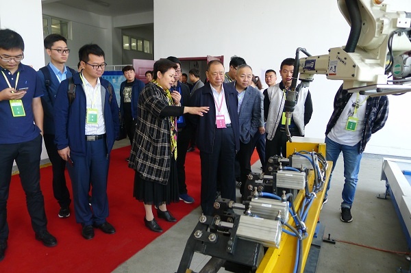 科慧科技董事長陳志宏女士帶領島親參觀機器人工作站并詳細講解