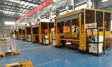 將工件裝夾在A端的伺服變位機上→雙焊接機器人同時啟動開始焊接工作→機器人焊接A端工件的同時進行B端工件的裝夾→A端焊接完畢焊接機器人轉向焊接B端工件→在焊接B端工件的同時A側人工進行工件的拆卸和組裝。 如此循環進行。節省了大量的人力和物力,整個工作站系統結構穩定可滿足24小時連續作業。