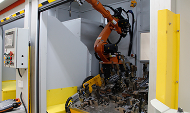 采用雙工位布局,可以有效的防止在工件拆卸時機器人的空置時間,提高機器人使用效率,最終提高其生產效率。