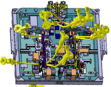 工裝夾具采用特殊材料,并經熱處理,如果時間長定位件磨損,更換非常容易。且夾具模塊可拆卸更換,柔性較強,方便客戶更換其他產品的使用。