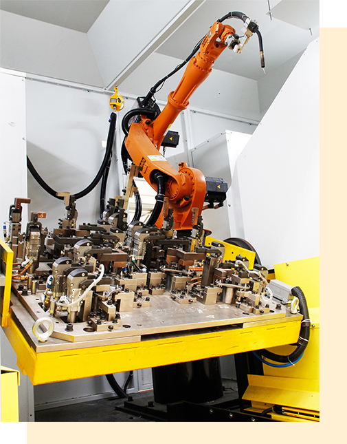 可以根據實際情況進行相應的布局,有效的避開夾具的干涉狀況,雙工位配置,翻轉變位機及工裝夾具,穩定和提高焊接質量,更好的保證高品質焊接。