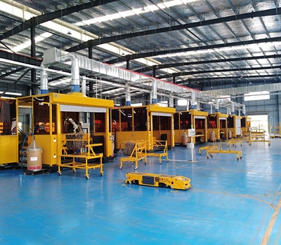 該項(xiàng)目運(yùn)用24臺(tái)工業(yè)焊接機(jī)器人、12套工作站、2臺(tái)全自動(dòng)激光切割機(jī)、2臺(tái)全自動(dòng)沖弧口機(jī)、3臺(tái)自動(dòng)切管機(jī)、4套智能AGV小車(chē)物流搬運(yùn)系統(tǒng)、5臺(tái)自動(dòng)彎管機(jī)、抽煙除塵系統(tǒng)、雙氣路集中供氣系統(tǒng)、可視化管理系統(tǒng)及中樞集中控制系統(tǒng)。
