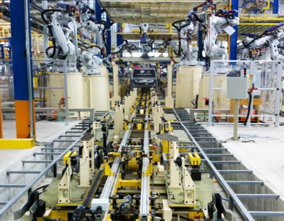 汽車自動化焊接主線及地板線是指通過焊裝工藝完成汽車框架及其地板線的綜合生產線,通常包括工裝夾具、定位支撐系統、往復傳輸設備和自動焊接設備等。根據車身大體分為車身側圍總成線、車身門蓋總成線、地板總成線、車身焊裝主線等,各部分又有相對應的主線、子線、左右對稱線和獨立島。根據生產計劃、自動化程度和生產方式等不同,每條線又分為若干工位,各工位通過傳輸裝置連為一體,各工位又可獨立完成工作!