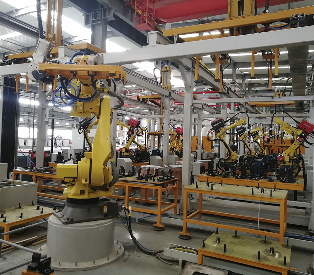 整條柔性自動化焊接生產(chǎn)線包含爐體總成檢測線、爐體總成焊接線、外壁成型線、內膽成型線四大部分。合理的工位設計,實現(xiàn)了爐體自動化上下料、定位、焊接、組對、搬運以及打壓檢測等工序的全自動化。