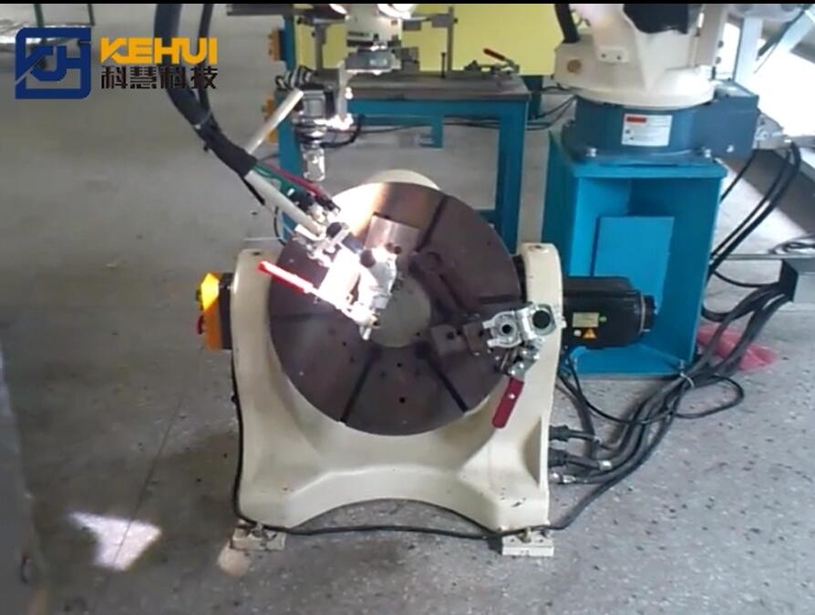 工作臺回轉采用變頻器無級調速,調速精度高。遙控盒可實現對工作臺的遠程操作,也可與操作機、焊接機控制系統相連,實現聯動操作。兩軸伺服變位機可以實現水平360旋轉,垂直90度傾斜,配合機器人,實現焊接聯動。